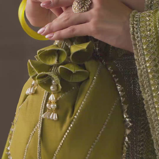HAND EMBALLISHED SLV BDR ORGANZA